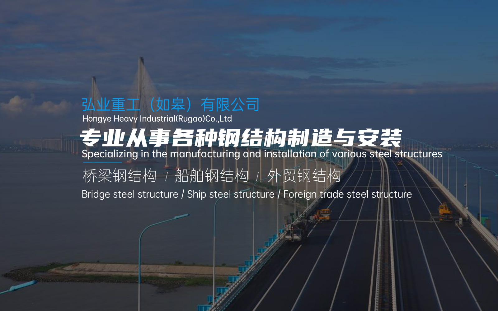 南通弘業(yè)重工有限公司是一家以橋梁鋼結構、船舶鋼結構、外貿(mào)鋼結構制作為主的有限責任公司。公司坐落在風景秀麗、人文薈萃、物產(chǎn)豐富的江海之濱一中國近代第一城江蘇南通市。公司由董事長嚴祥于2015年3月創(chuàng)建,注冊資本3180萬元整。生產(chǎn)基地位于如皋市如皋港熔盛重工廠區(qū)內(nèi),現(xiàn)年總生產(chǎn)量達15萬噸。在激烈的市場競爭中“以誠信待人、以質(zhì)量取勝、以信譽為本”為企業(yè)宗旨,基于此前的良好市場口碑、豐富的鋼結構制造經(jīng)驗和專業(yè)技術,從事各種鋼結構制造與安裝,并以優(yōu)秀品質(zhì)成功交付多項產(chǎn)品,在重工行業(yè)得到了客戶的廣泛認可,獲得了較高的市場信譽。Nantong Hongye Heavy Industry Co., Ltd. is a limited liability company mainly engaged in the manufacture of bridge steel structures,ship steel structures and foreign trade steel structure production. The company is located in Nantong City,Jiangsu Province, the first city in modern China with beautiful scenery, cultural gatherings and rich products. The company was founded by Chairman Yan Xiang in March 2015 with a registered capital of 8.31million yuan.The production base is located in the Rongsheng Heavy Factory in Rugao Port,Rugao City.The total annual production capacity is about 150,000 tons.In the fierce market competition, ?treat people with integrity, win with quality, and take credit asthe foundation? isthe corporate tenet. Based on the previous good market reputation,rich experience and professional technology in steel structure manufacturing, we are engaged in the manufacture and installation of various steel structures,and have successfully delivered a number of products with excellent quality, which have been widely recognized by customers in the heavy industry industrial field and won a high market reputation…